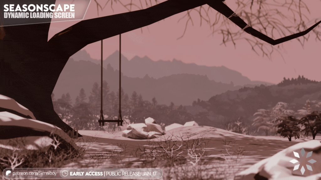 Seasonscape is a dynamic Sims 4 loading screen that changes in real time depending on the time and season. For example, if you load the game during the day, the override automatically adjusts to daytime. But if you launch at night, you get a nighttime backdrop complete with the moon and darkness.