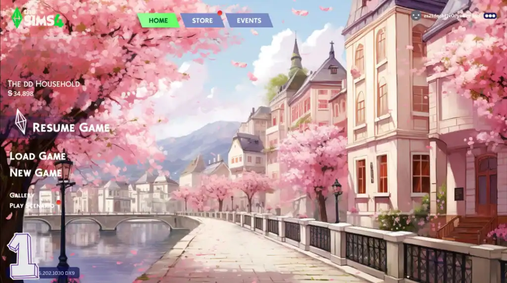 The European Pink Town Aesthetic is another great addition to your Sims 4 main menu overrides for 2025 list. The override captures the charm of a European canal town/street in full cherry blossom season.