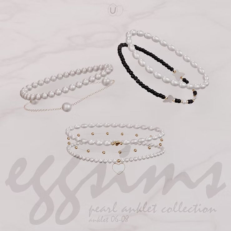 Pearl Anklet Collection is a Sims 4 anklet cc pack with multiple pearl-based anklet styles, including single-strand, double-layer, and mixed designs with small chain details. You’ll find variations with added charms, such as hearts, and minimal accents, plus multiple swatch options for each version.