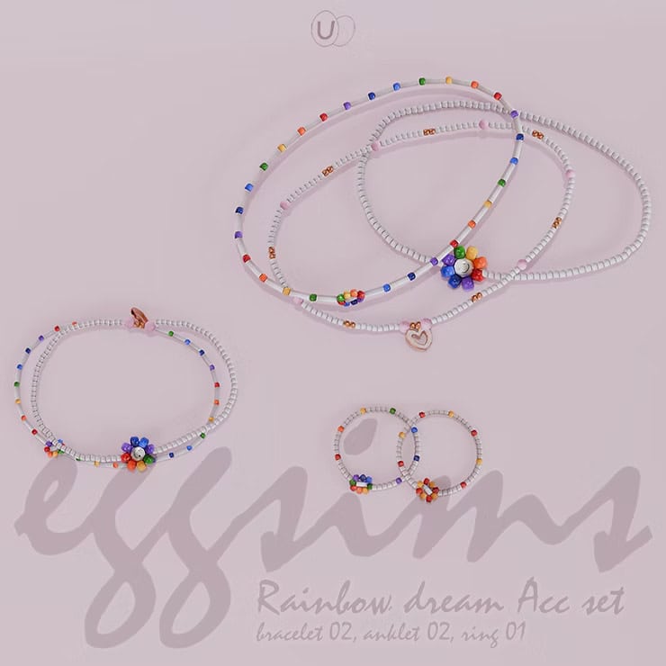 If you’re looking for a soft, elegant anklet, check out the Anklet 06. It’s a gorgeous piece with a double-layer design, pearls, and a fine chain that sits neatly around your Sim’s ankle. You’ll find it in two swatches with subtle variations, allowing you to mix and match colors to fit your style.