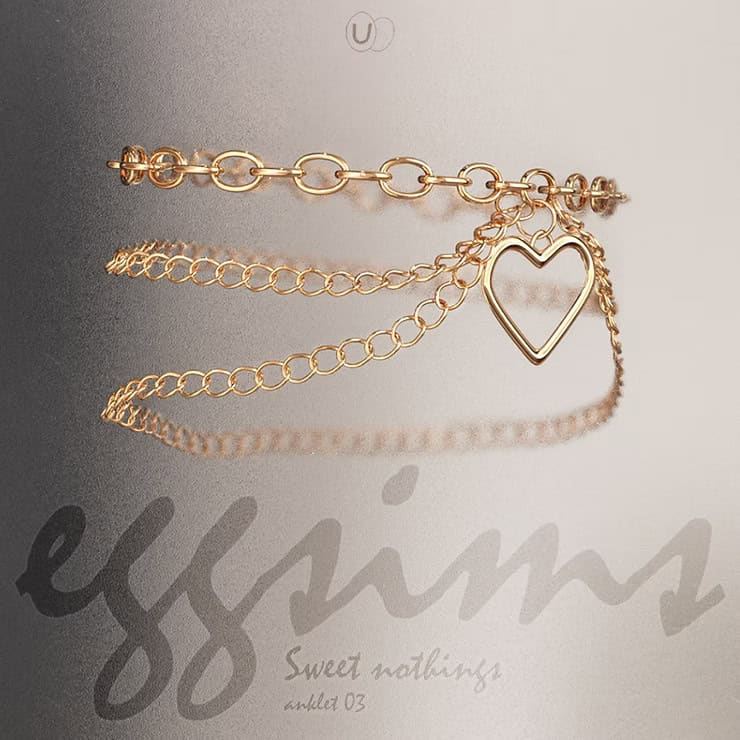 Sweet Nothings Anklet 03 is a layered chain anklet with a small heart charm hanging at the center for a soft, detailed finish. This anklet cc is a must-have, and it comes in 6 swatches.