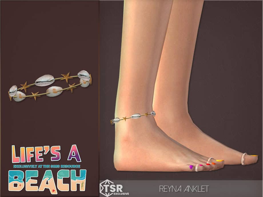 Last on this list is the Life’s A Beach – Reyna Anklet, a coastal-inspired accessory designed to bring effortless beach vibes to your Sim’s look. This anklet has a delicate chain adorned with small seashell details for a relaxed, ocean-themed aesthetic.