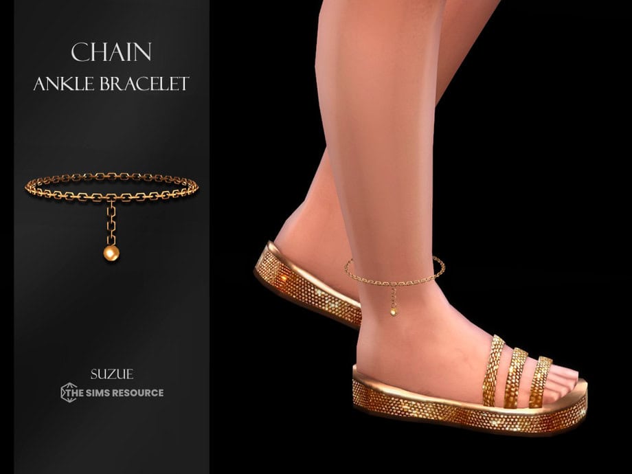 If you want a soft, feminine anklet with a subtle floral touch, the Flowers Anklet Female is a beautiful choice. This is one of the few Sims 4 anklet cc’s with a unique design that extends toward the toes. It’s finished with small flower details for a light, spring-inspired feel.