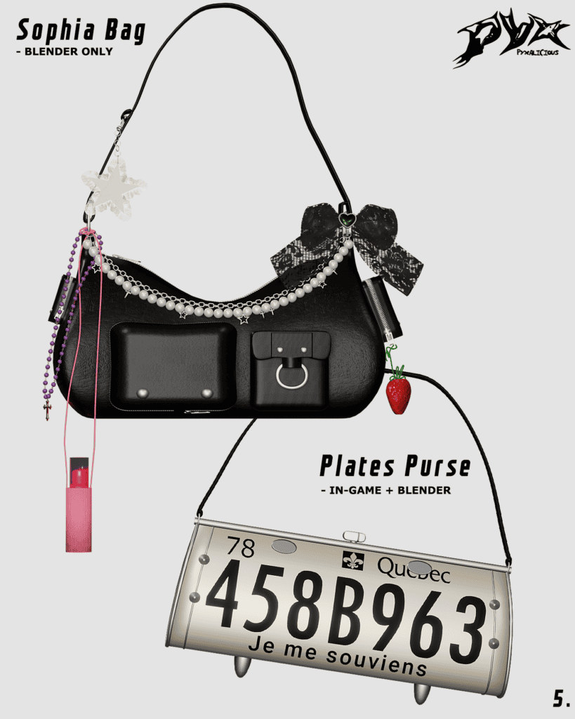 Note that both left- and right-hand wear options are included in the download, along with functional build/buy versions for storage. I’d pair these bags with tailored outfits, casual chic looks, or everyday wear like jeans and blouses for a balanced, polished style.