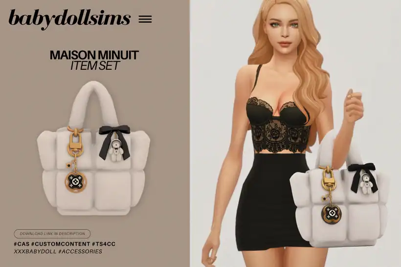 Pair this with fun, Y2K-inspired outfits, mini skirts, or casual streetwear looks, where the bag can be the main focal piece. This Sims 4 bags cc is compatible with HQ settings and the base game.