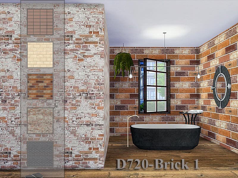 Give your Sim’s interior a dramatic, story-rich finish with the D720: Brick 1 set. The bold, high-texture brickwork comes in ten patterns of chipped surfaces, mixed tones, and heavier weathering. Use these to create rooms with a vintage industrial vibe, such as bathrooms, workshops, loft spaces, or themed builds.