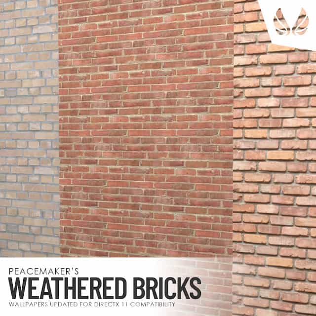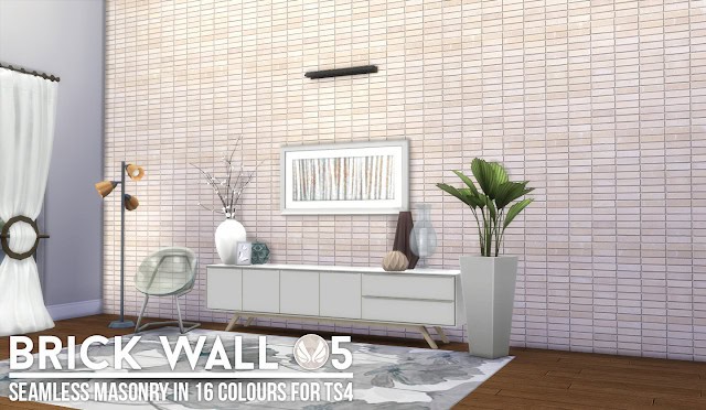 Bricks 7 is a small cc pack with four wall swatches for your industrial loft. The four included variations range from multicolored pastel bricks to muted beige and warm clay tones, each carrying a slightly distressed texture for a realistic aged effect.