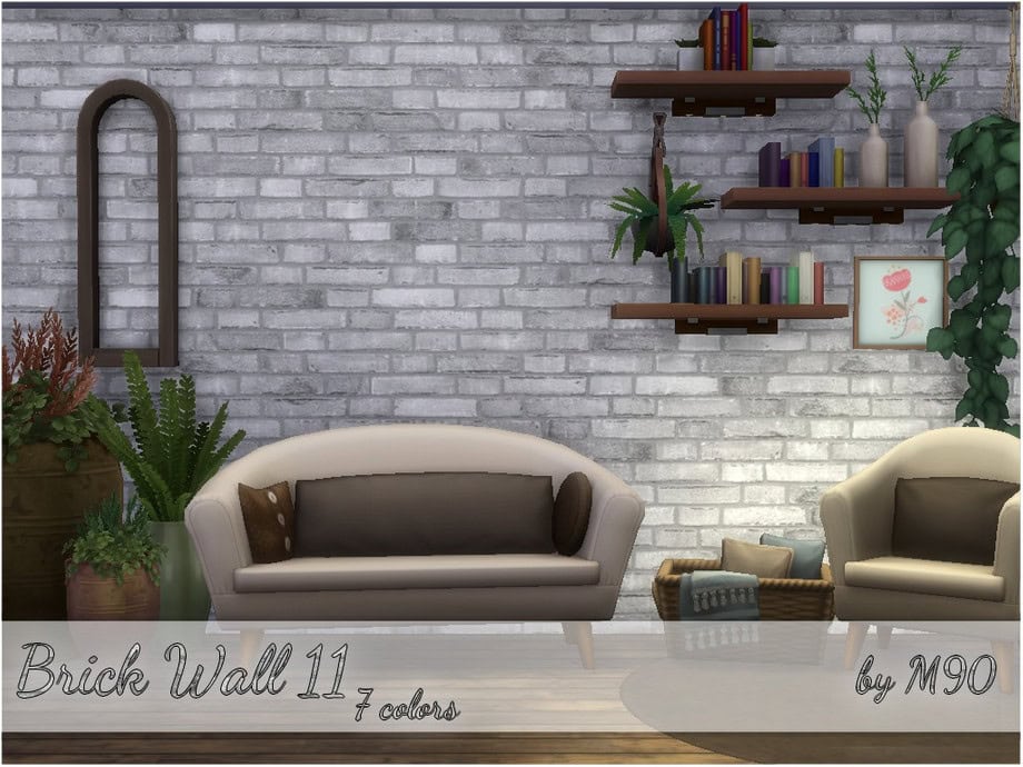 I’d pair these worn-style bricks with wooden floors, neutral furniture, or rooms with greenery. Click the attached link for more information about this Sims 4 brick wall cc.