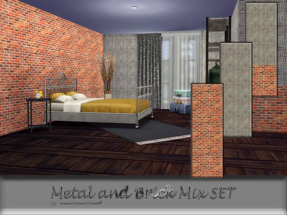 We can all agree that industrial interiors thrive on contrast. This set leans into it by pairing rough brickwork with structured metal panels. Each variation blends texture and tone to transform bedrooms, lofts, and studio builds into moody, modern spaces.