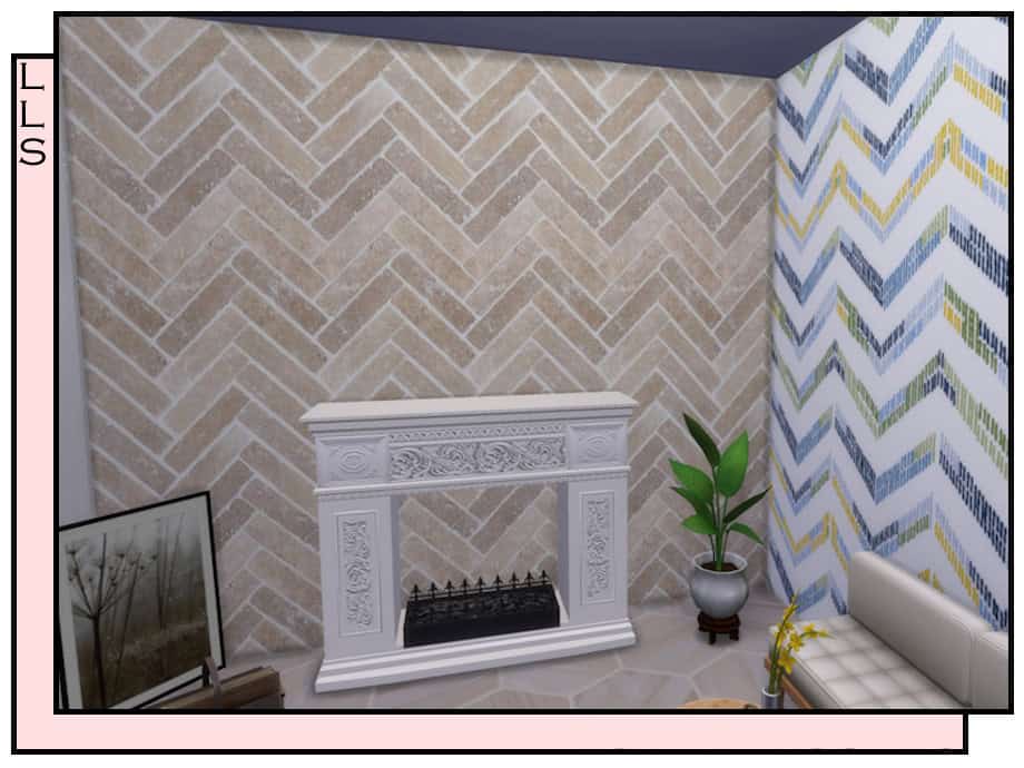 Bring a refined, designer touch to your Sim’s interiors with the Herringbone Brick Wall set. Using a herringbone layout, this Sims 4 brick wall cc is the perfect accent wall for kitchens, dining rooms, or creative studio spaces.