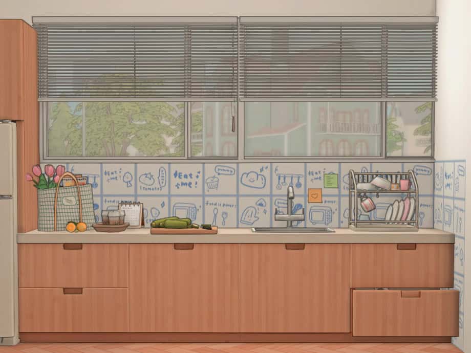 You’ll find the brick wall in five color variations, and it works on all three wall heights. Pair this Sims 4 brick wall cc with warm wood cabinets or neutral counters.