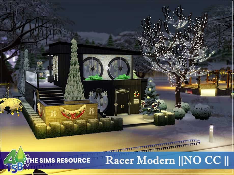 Last on this Sims 4 Christmas house list is the Racer Modern Christmas House, a sleek and contemporary build transformed for the holiday season.