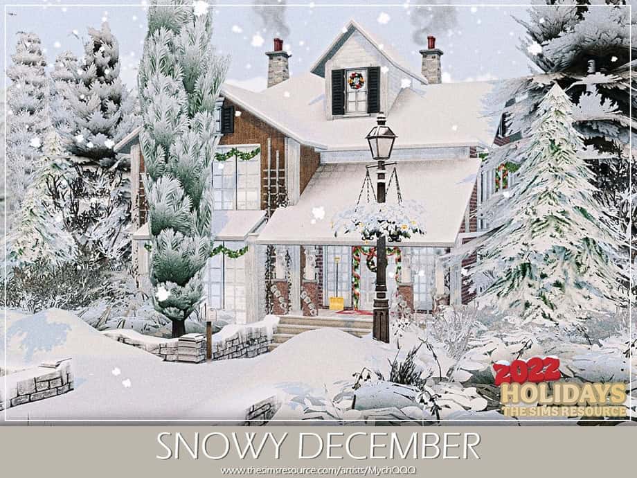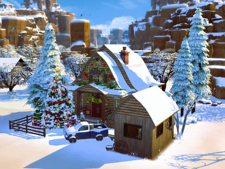 If you’re after a sleek, modern cabin, the Frozen Tony Christmas House is the perfect choice. The home’s contemporary design makes it a great addition to your Sims 4 Christmas houses folder.