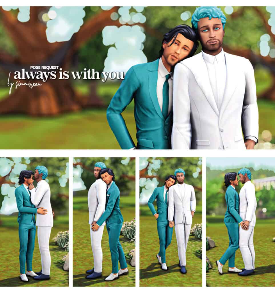 Note that these poses are gender-neutral, so you can use them in same-sex or hetero relationships. Since every Sim is built differently, there may be minor clipping or floating depending on body types.