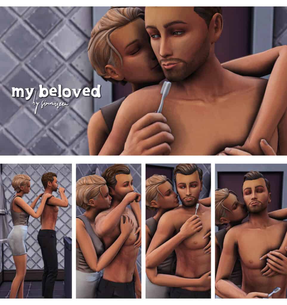 The pack includes 4 couple poses, and you need the toothbrush accessory. Because Sims have different body types and outfits, some clipping may occur with the poses.