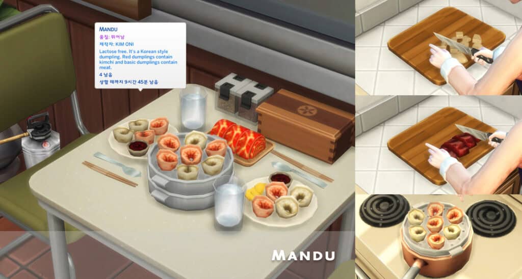 Sims prepare the dish by chopping vegetables, mixing dough, and steaming the dumplings on the stove. The recipe comes in 1, 4, and 8 servings, supports group cooking, and requires Oni’s latest Recipe Pack Mod to function. This warm, comforting meal is an excellent addition for players who enjoy cultural meals and detailed family gameplay.