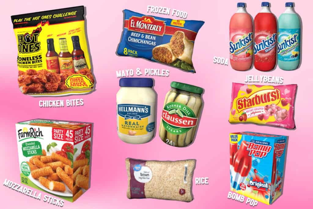 Sometimes you want a bit of everything in your pantry, and the Random Foods Part 2 collection brings that chaotic, lived-in kitchen energy to your game. This clutter set includes packaged snacks and frozen foods. It also comes with classic American grocery staples, like chicken bites, mozzarella sticks, chimichangas, mayo, pickles, brown rice, Sunkist soda bottles, Starburst jellybeans, and Bomb Pops.