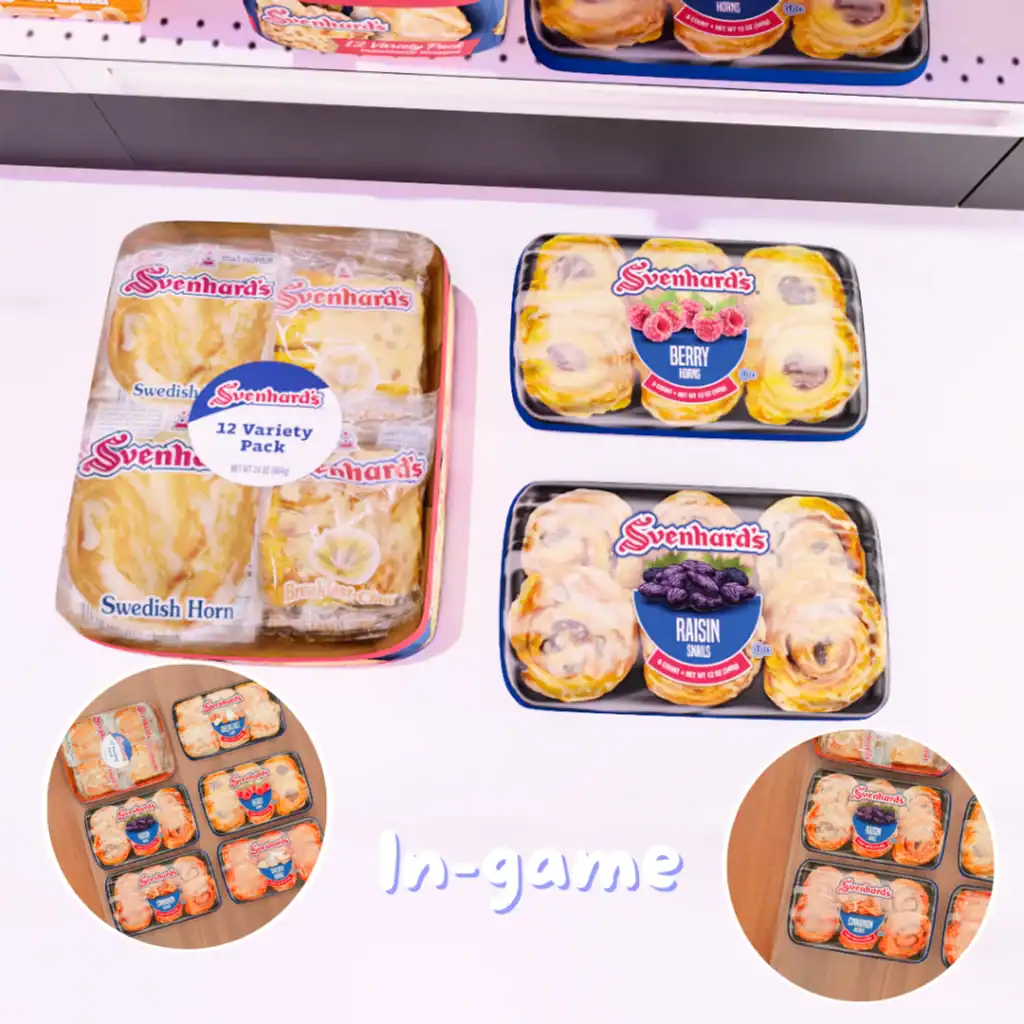 The bright bakery packaging is perfect for kitchen counters, grocery shelves, cafés, or gas station builds. Note that you may need to resize a piece or two in-game to fit shelves or displays, but they work well on most counters. This set is compatible with the base game, so you won’t need additional EPs to use it.