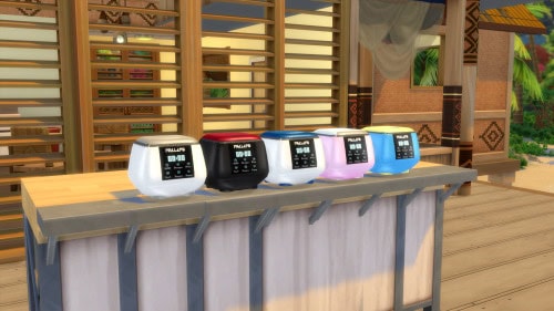 The best part is the recipe variety. Your Sims can make dishes like poke bowls, seafood rice, veggie rice bowls, congee, beans & rice, and more. If rice is a staple in your Sim’s household, download this appliance.