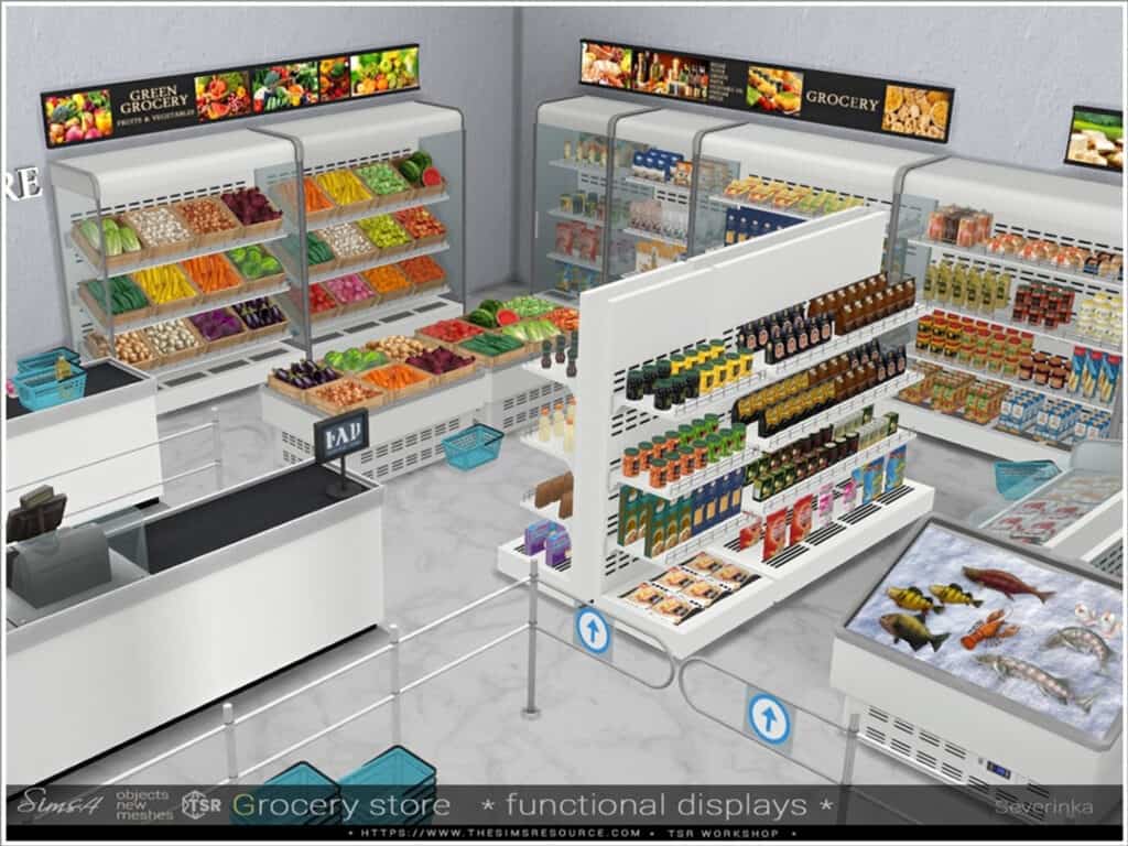 If you want your Sims to shop for groceries instead of magically pulling ingredients from the fridge, get this mod. It adds functional grocery displays, including shopping carts, cash registers, food shelves, and realistic buying interactions so your Sims can stock up like real families.