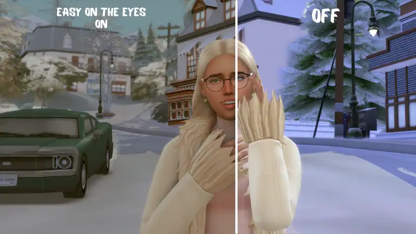 If you’re after bold graphics and visuals, I’d use this Deyset GShade preset. Compared to the vanilla game lighting, this preset adds more contrast, refined highlights, and a bright glow to your Sim’s features.