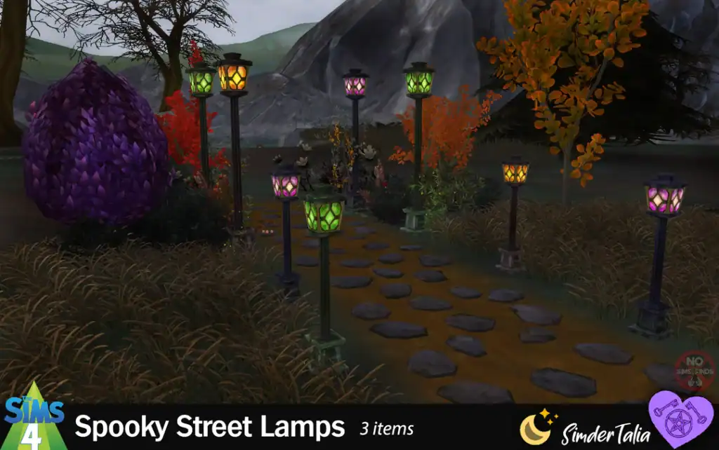 These Sims 4 lamps cc are perfect for haunted houses, pumpkin patch walkways, or spooky suburban porches.