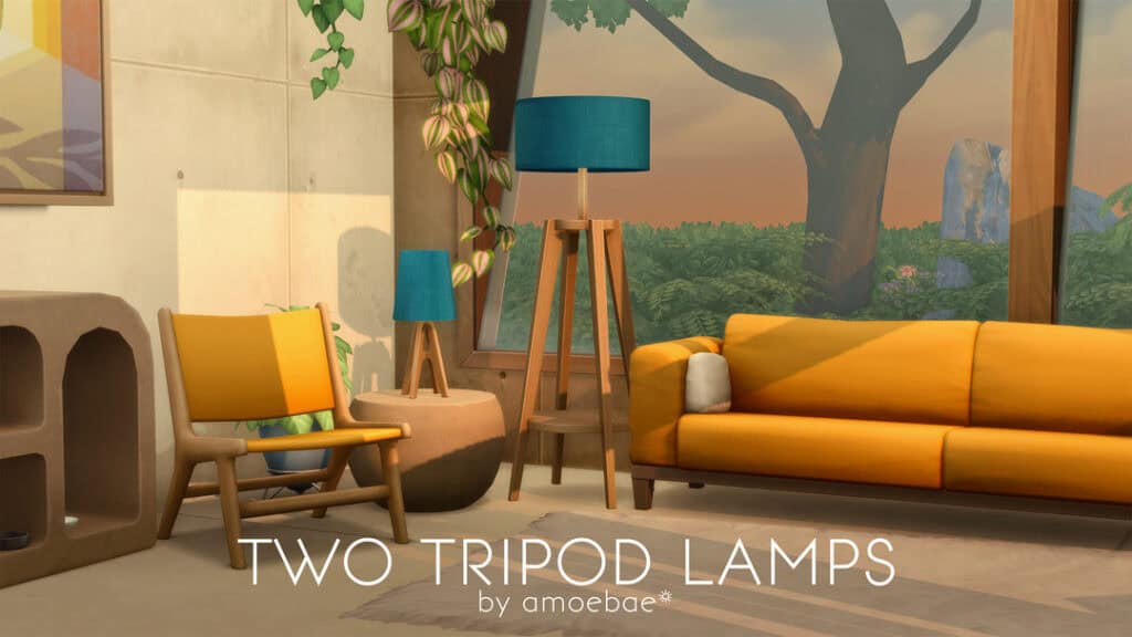 The lamps come in rich recolors and modern swatches that pair beautifully with mid-century sofas and earth-tone interiors. The table lamp gives off a soft glow, while the floor lamp has a brighter, deeper light that you can adjust for screenshots or gameplay.