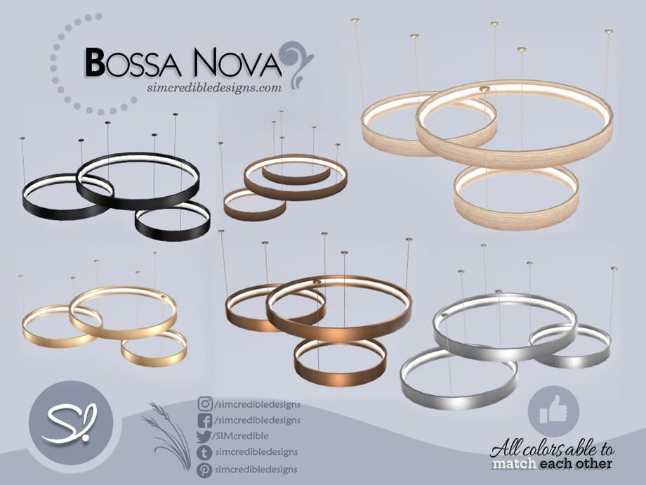 Another stunning ceiling lamp to add to your Sim’s collection is the Bossa Nova ceiling lamp. The thin circular rings floating from the ceiling give dining rooms or living spaces a sleek, airy look. Each ring has subtle light along the inner edge, which creates a warm, diffused glow rather than a harsh spotlight.