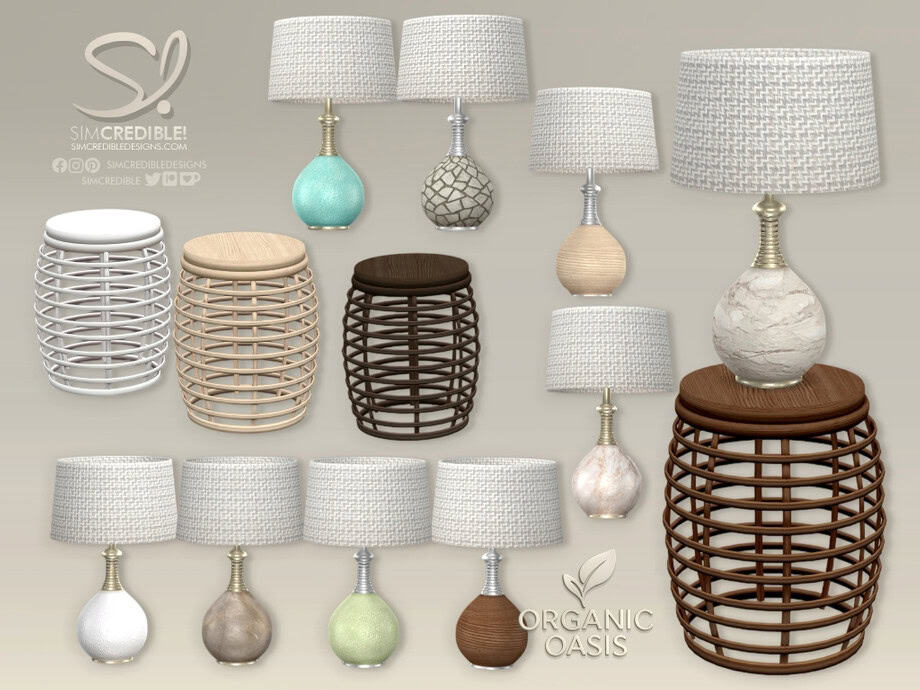Because this is part of the full Organic Oasis Hotel Suite collection, you can pair the lamps with matching beds, ottomans, wall décor, cushions, and side tables for a complete bedroom look. This Sims 4 lamps cc is ideal for Simmers who love natural palettes, boho hotels, or beach-inspired rentals.