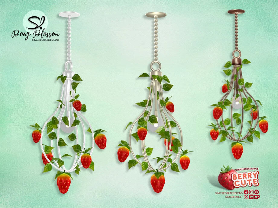 If you want charming cottagecore lighting with a playful twist, this Berry Blossom ceiling lamp is a standout piece. Created by SIMcredible!, the lamp is wrapped in delicate vines and ripe strawberries for extra sweetness.