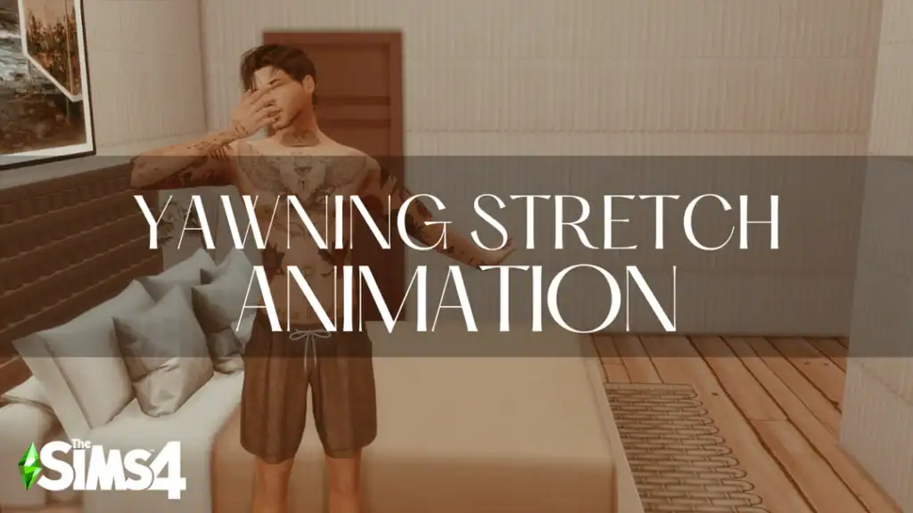 Yawning Stretch Animation is a simple but highly realistic idle animation where your Sim yawns and stretches. It’s the perfect pre-bed moment to add to your Sims 4 night routine mods folder. Although it’s a small detail, it makes a big difference in making your Sims feel more lifelike as they wind down for the night.