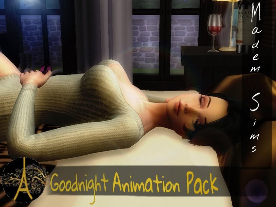 Goodnight Animation Pack is a soft, bedtime-focused animation set with multiple sleeping poses of your Sim falling asleep soundly. They can sleep with their arms folded, their legs sprawled on the bed, or with half their body hanging off the bed.