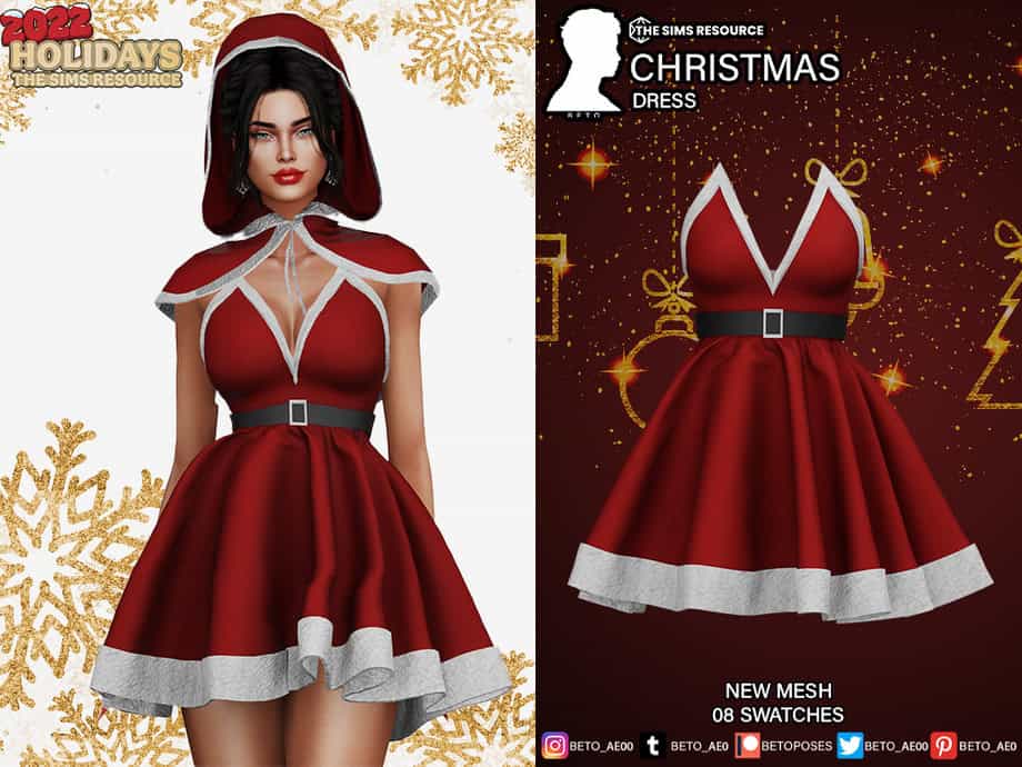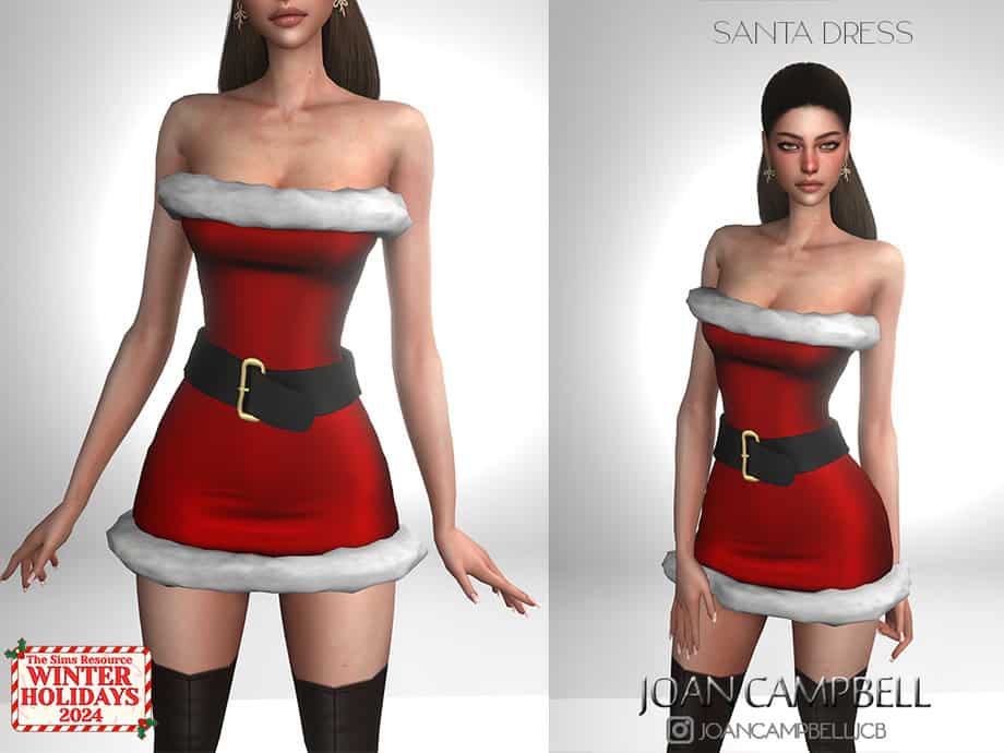 The Sims 4 Santa cc is available in eight swatches and is designed for teens through elders. Click on the link attached for more information on this dress.