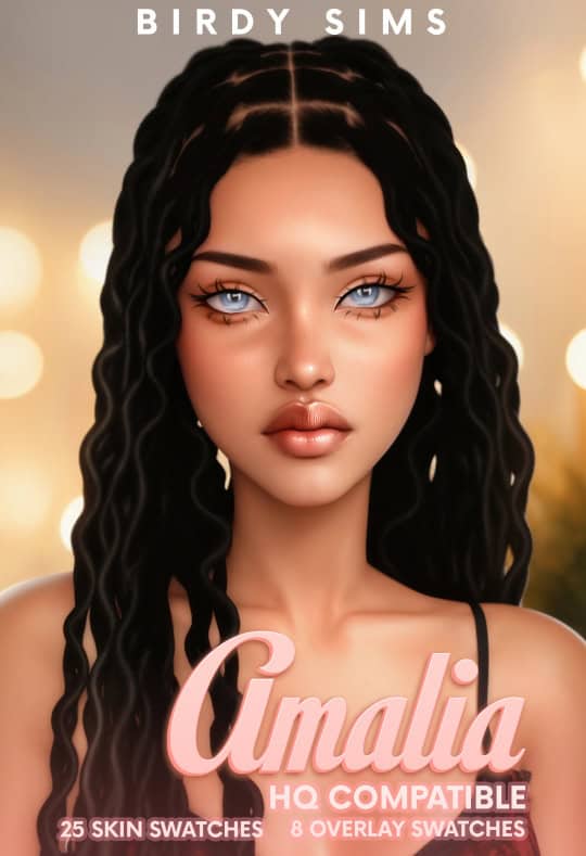 Amalia Skin brings a soft, radiant glow with lifelike depth and dimension to CAS. It’s available in 25 total swatches, with 18 natural tones and 7 fantasy-inspired shades. It also comes with an overlay version featuring 8 additional swatches.