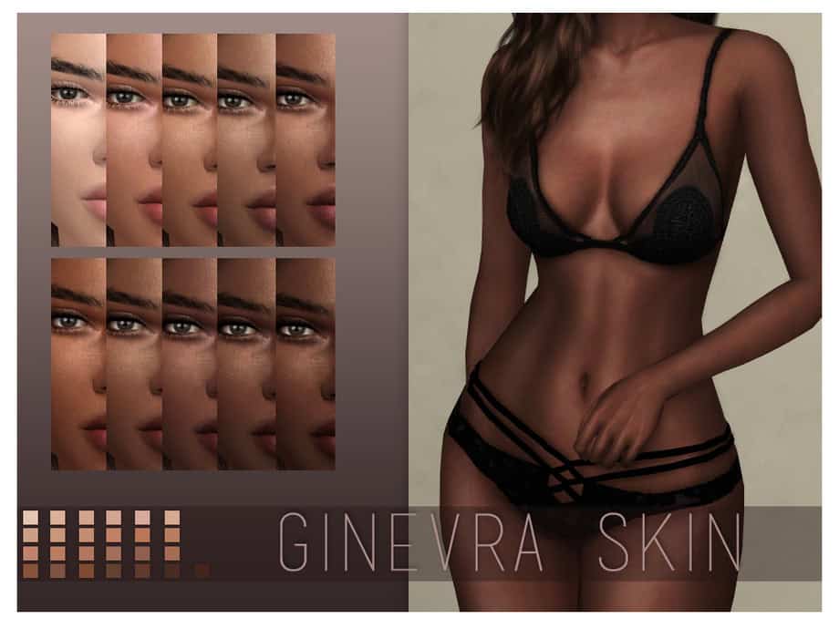 The tones range from light to deep, and blend effortlessly with the creator’s signature eyelid sets (N11 and N12) for a cohesive look. This skin is HQ compatible and can be used in the base game.