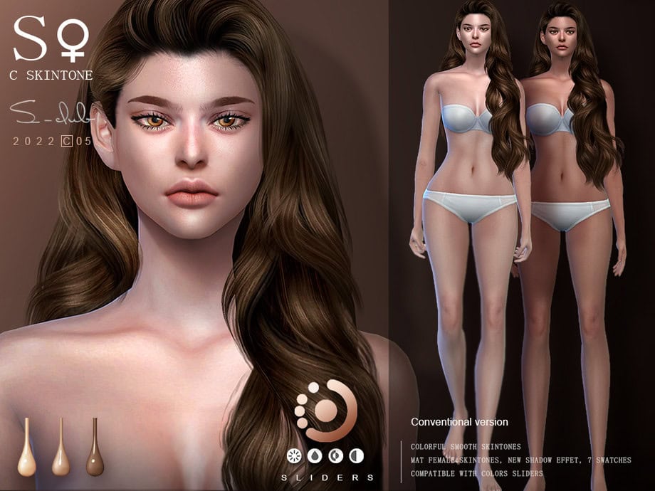 With such a wide range of customization choices, you can create Sims with unique facial and body features. The skin is available for the female frame, from teen to elder, and works flawlessly with both EA and custom skintones.