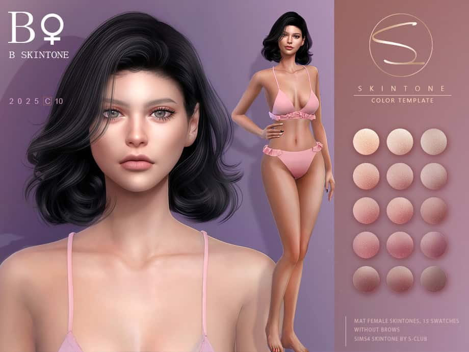 The set includes 10 delicate tones, from light to tan, to complement a wide range of complexions. If you’re going for a fresh, no-makeup look, this Sims 4 cc is an excellent choice. Best of all, it has a low polycount, so everyone can use it, no matter their PC strength.