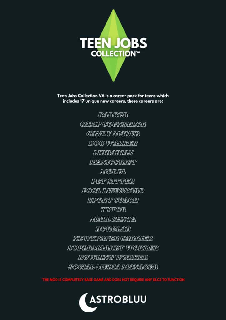 Before installing this mod, make sure your teen Sim drops out of school. You can use the MC Command Center mod to do this. Then, download the mod file according to the packs you have.