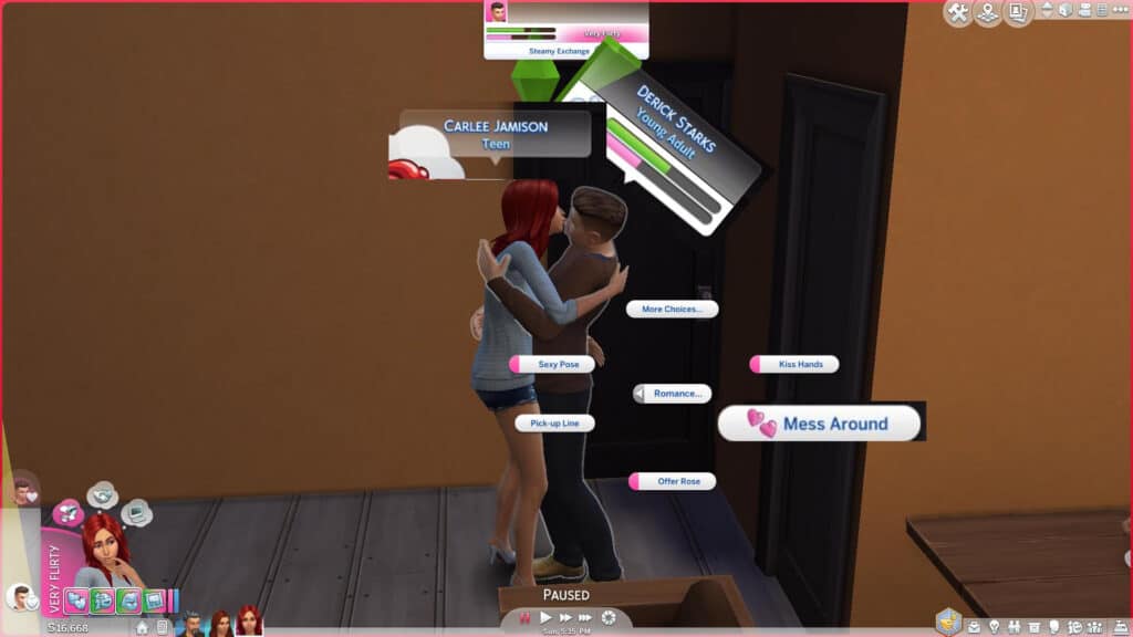 This mod also has a romantic interaction for the Sim you have a crush on, allowing you to hold hands.