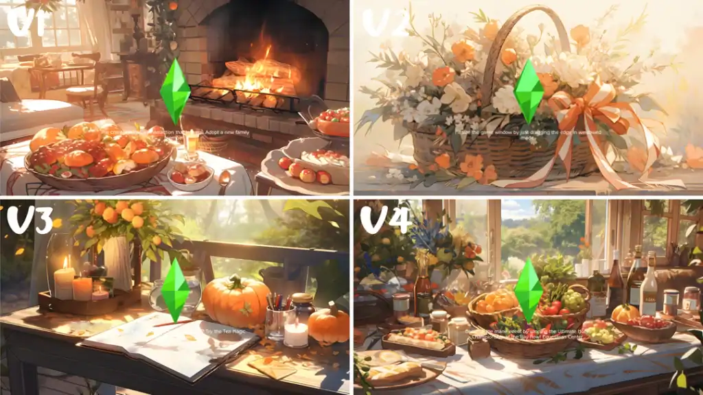 You’ll find four variations of the loading screen, including autumn florals, candlelit settings, harvest foods, pumpkins, and soft daylight scenes. These work well for Thanksgiving and Friendsgiving gameplay.