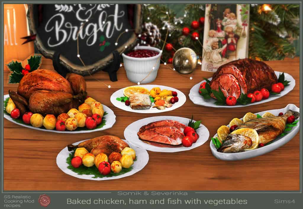 They also appear in restaurant menus and require only Level 1 Homestyle Cooking. You can install the EA version for a base game style recipe or use the Custom version if you play with the Realistic Cooking Mod or SCCO. I like using this pack for my Thanksgiving meals as it is visually appealing and aesthetically pleasing.