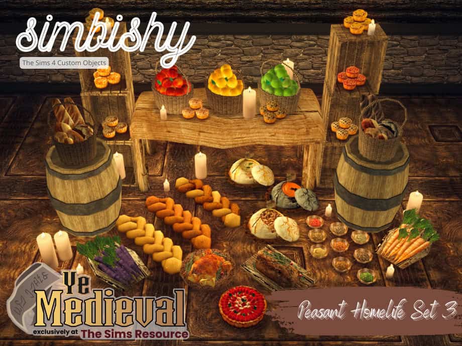 For those into historical gameplay, this food clutter set is a must-have. It contains an abundant spread of breads, pastries, vegetables, and rustic dishes for your medieval servants.