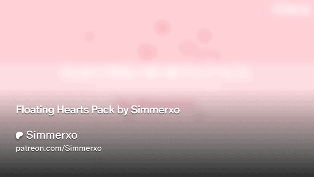 The Floating Hearts Pack by Simmerxo is a full Valentine-themed aesthetic bundle. It transforms your Sims 4 loading experience with soft pink tones and floating heart details. The set also comes with matching extras like an intro screen, heart plumbob replacements, a light pink logo option, and a coordinating main menu override for a complete seasonal UI refresh.