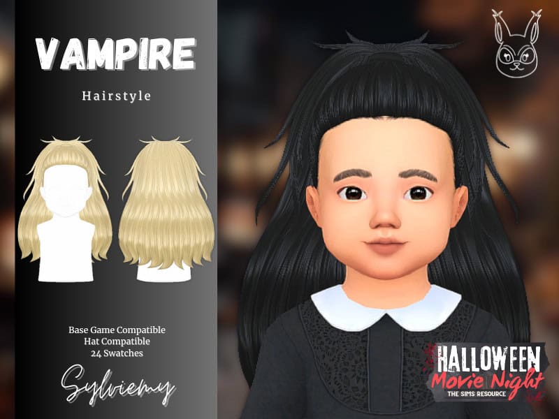 This hairstyle is available in 24 swatches, giving you access to multiple colors to mix and match. I recommend using the hair for picture-perfect CAS moments and in-game screenshots of your toddler vampire.