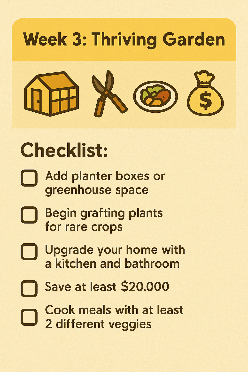 - Cottage Living: Sell produce at Finchwick Fair or village stalls for extra realism.