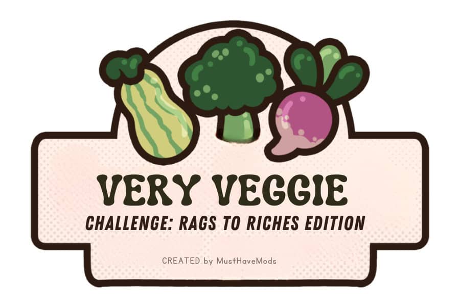 A: The Very Veggie Challenge was originally created by Lilsimsie, one of the most popular Sims 4 YouTubers. This Rags to Riches edition is a fan-made twist inspired by her rules. You can watch the video of the original challenge here.